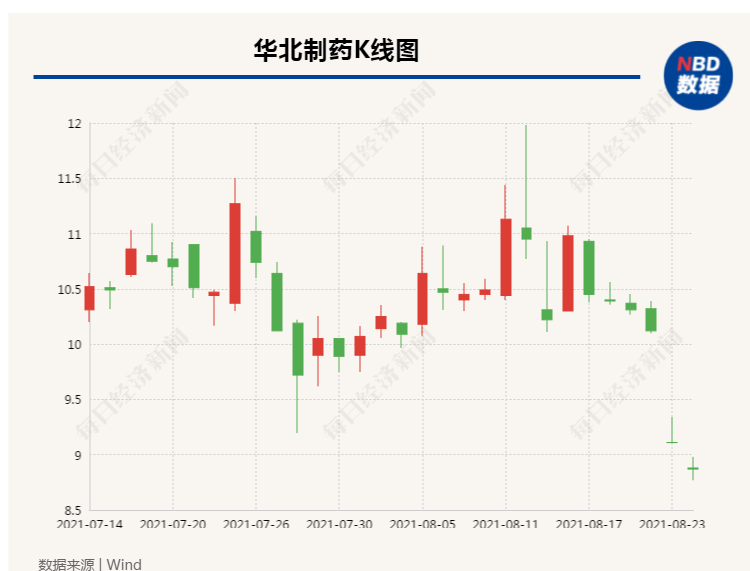 截至目前,集采已经走过三个年头,华北制药则成为了首个因产品断供被取消资格的药企。因集采“断供”,公司股价也触及跌停。8月24日晚间,华北制药发布公告称,公司2021年上半年实现营业收入55.83亿元,同比减少5.65%;实现净利润100.5万元,同比下降99.16%。