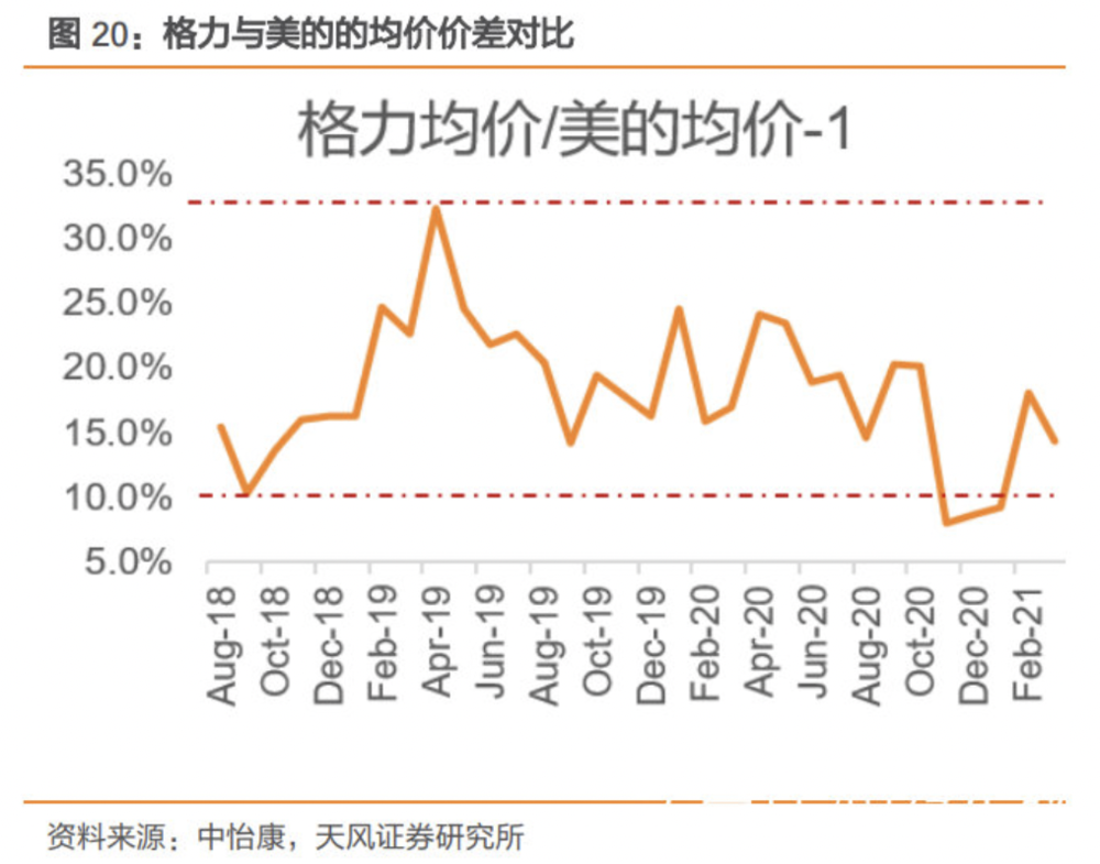 此外,格力与美的的价格差距明显缩小。截至2021年以来,格力与美的的线下价差收窄至在8%~20%,而2018年价差一度高达32%。