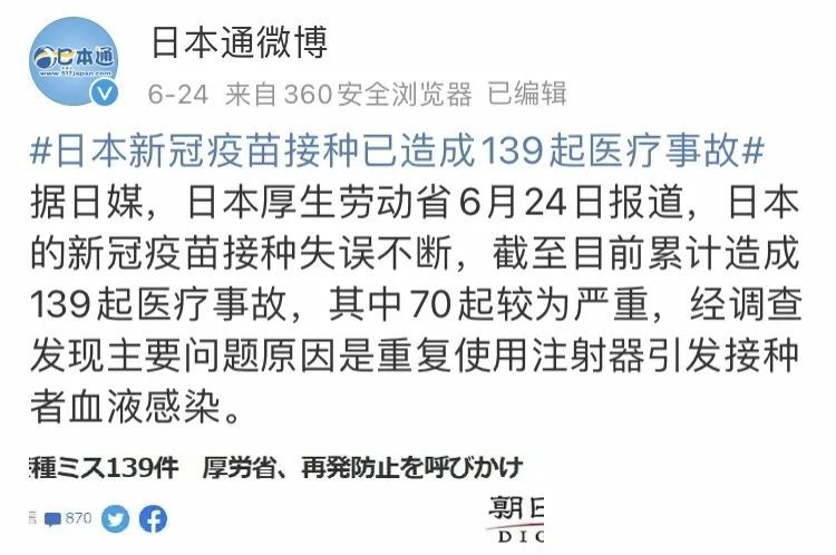 结果没多久,日本就爆出了疫苗被异物感染的事……