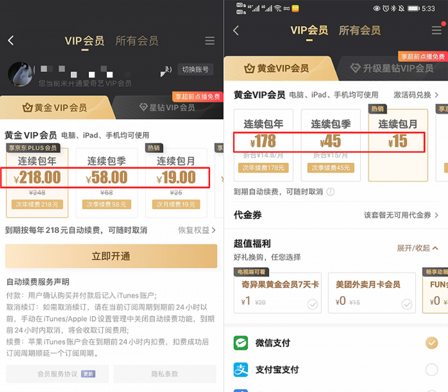 界面:iOS端买会员比安卓端贵百元,是价格歧视还是“苹果税”所致?