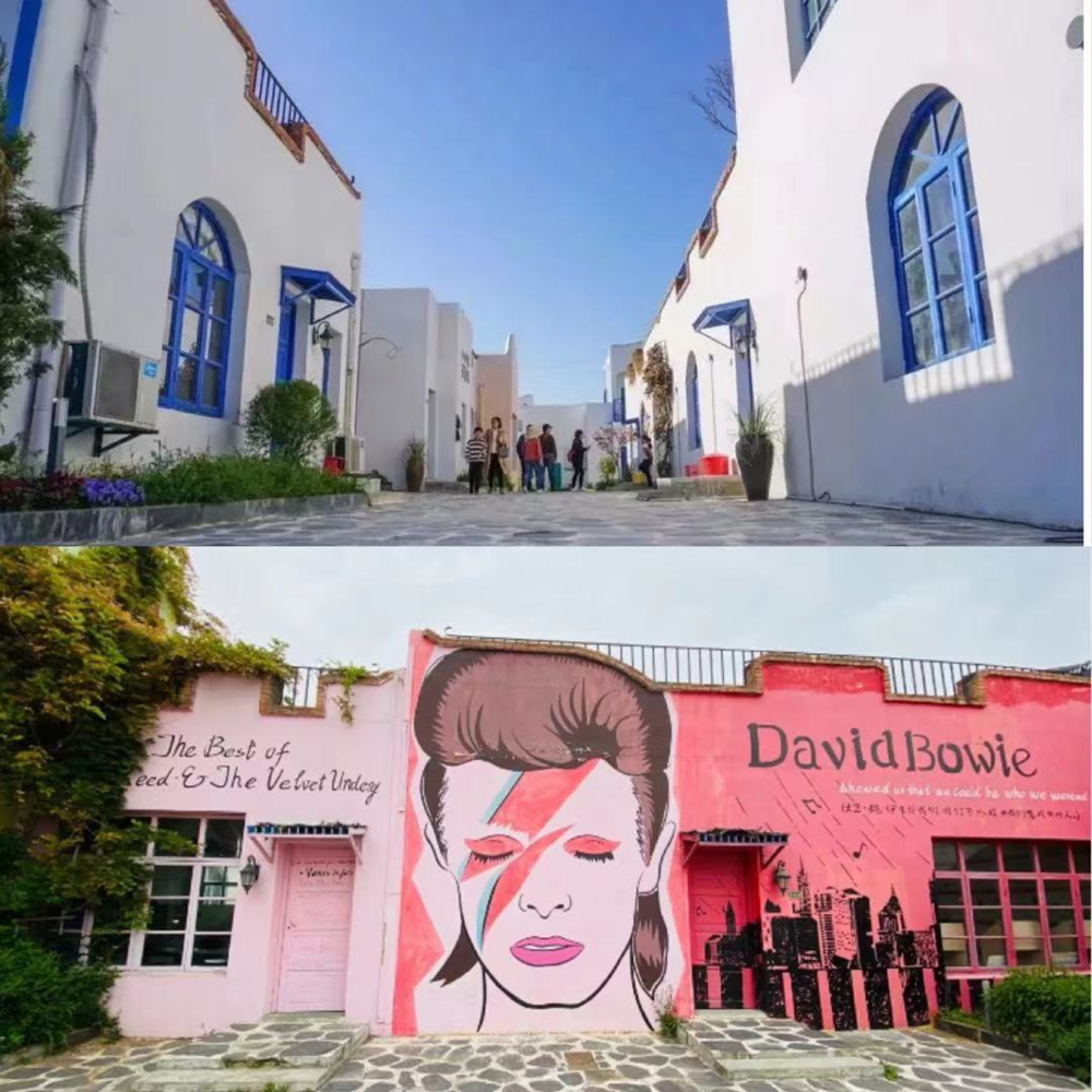 即便离最近的海也要数百公里,也毫不妨碍王大郢村争当圣托里尼的雄心壮志。所谓麻雀虽小,五脏俱全,白墙蓝窗、圆顶拱门,地中海风情的露台和鲜花,除了海,圣托里尼有的元素这里几乎都能找到。