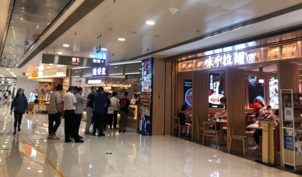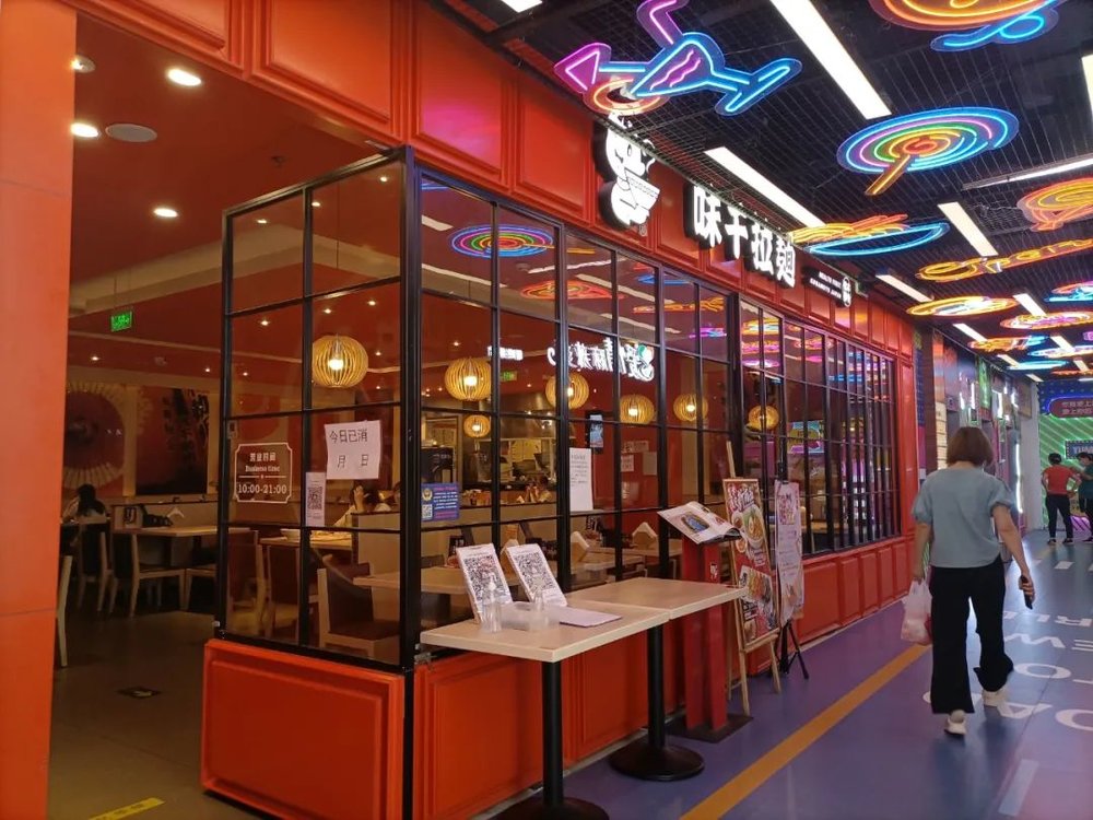 周二中午,内参君专门挑了饭点时间,去另一家商场探店。相比客单价差不多的煲仔皇,味千拉面店内的客流明显少些。而附近的遇见小面,几乎满座。