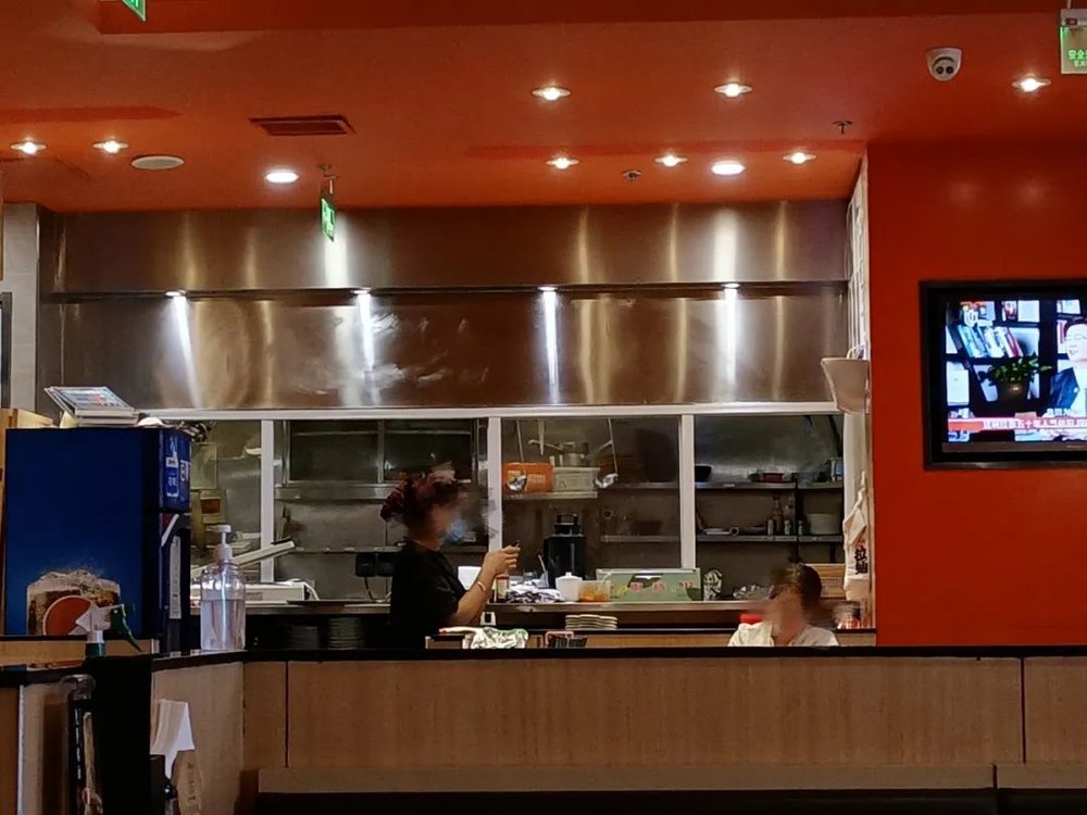 晚上7点正是用餐高峰期,店内总共只有两桌客人就餐,服务员闲得坐在角落里玩手机。餐厅显得异常冷清,只有电视里循环播放着创始人的专访视频,内参君望过去时,屏幕上刚好放至这句话——“这碗拉面,五十年人气依旧”。