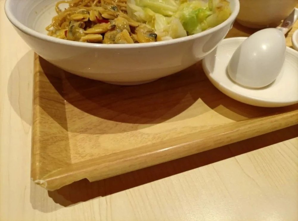 内参君点了一份夏日限定“藤椒鲜蛤拌面”,35元的套餐端上桌,软塌塌的包菜毫无爽脆口感;花蛤和面条及格分;溏心蛋作为味千的特色小吃,品质平平;赠送的半碗海带汤和咸菜,更是没有灵魂……更让人难以接受的是,餐盘一角有明显破损。