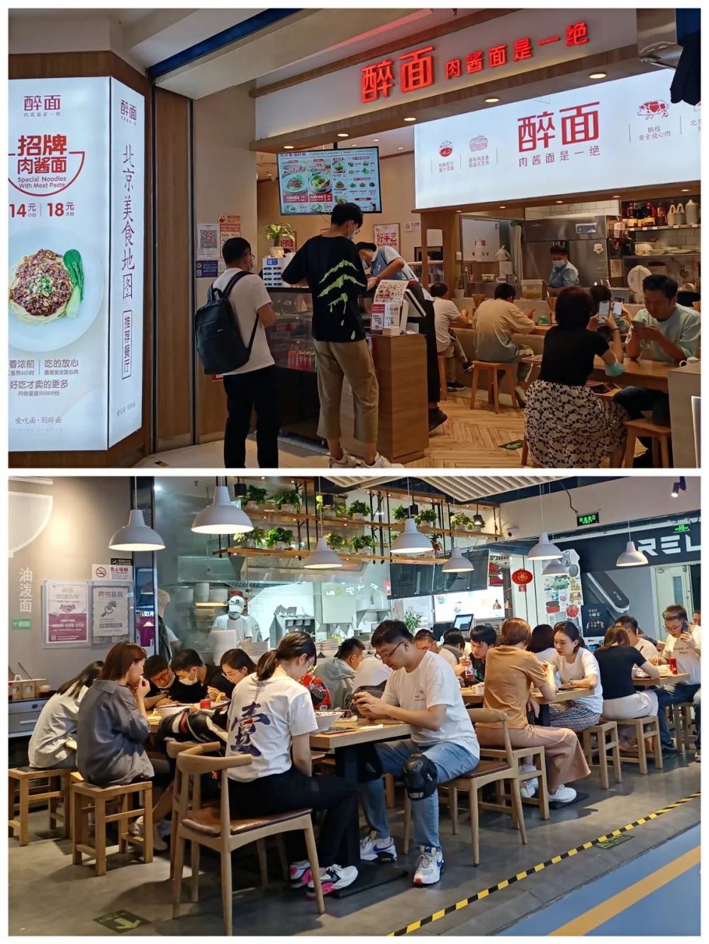 同一家商场、同一时段的醉面(上)、陕味食族(下)