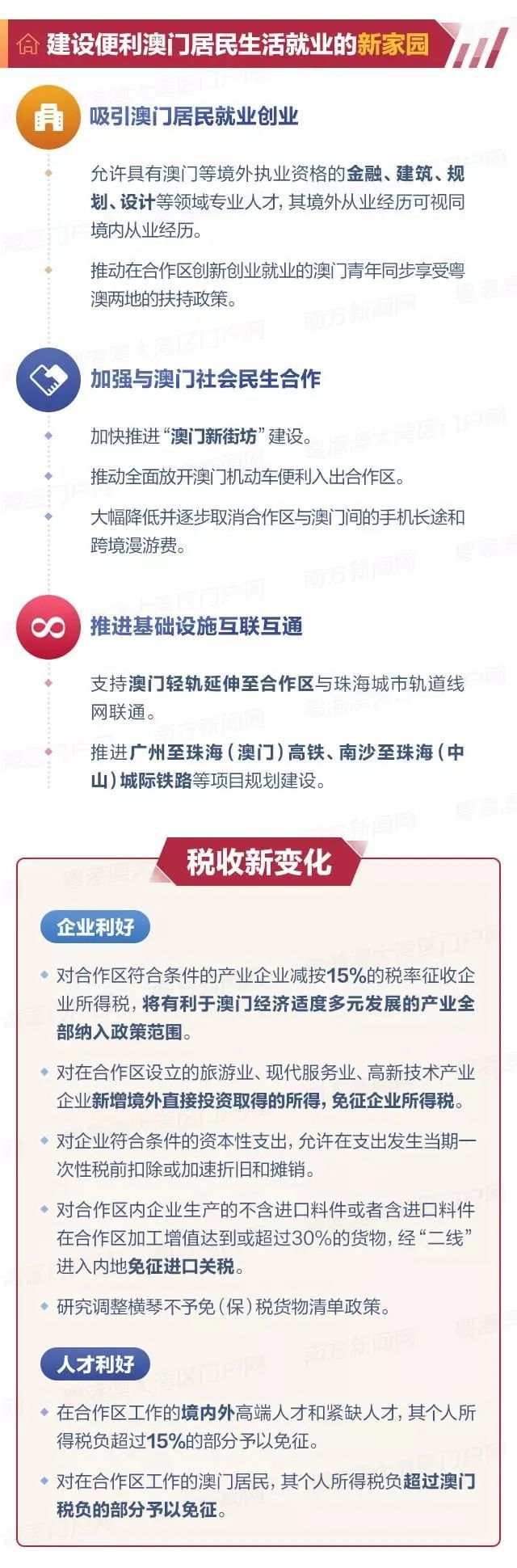 高水平打造横琴澳门青年创业谷、中葡青年创新创业基地等一批创客空间、孵化器和科研创新载体,构建全链条服务生态。推动在合作区创新创业就业的澳门青年同步享受粤澳两地的扶持政策。采取多种措施鼓励合作区企业吸纳澳门青年就业。对在合作区工作的澳门居民,其个人所得税负超过澳门税负的部分予以免征。