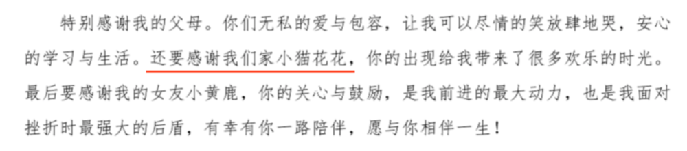 首先是宠物——在论文里感谢宠物早已不是新鲜事,根据知网上的公开论文显示,在论文的致谢部分中,猫的出场率明显高于狗。
