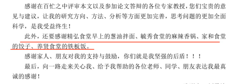 对新生而言,研究学校食谱,或许还不如翻翻致谢来得实在。