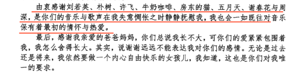 感谢偶像、音乐创作者已经是致谢里最常出现的现象。毕竟求学路漫漫,没歌听怎么行。