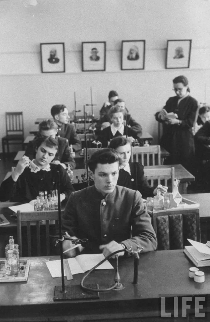 1958年3月,老牌杂志《生活》发表了一篇对比苏美青少年的学习生活的文章。《生活》杂志跟拍了来自莫斯科的16岁少年 Alexey Kutskov 和来自芝加哥的16岁少年 Stephen Lapekas 的一天的生活。