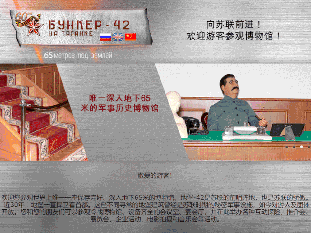 地堡内供游客参观的,有指挥中心、斯大林的办公室、会议室等。