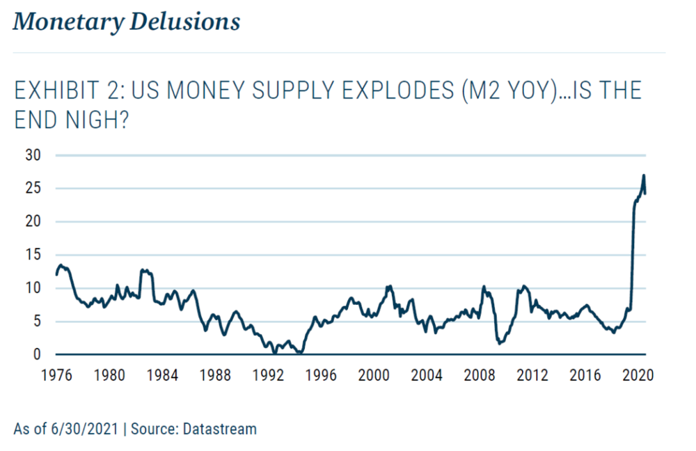 图2. 美国货币供应量激增(M2增速)……末日来临了吗?截至 2021 年 6 月 30 日 | 资料来源:Datastream