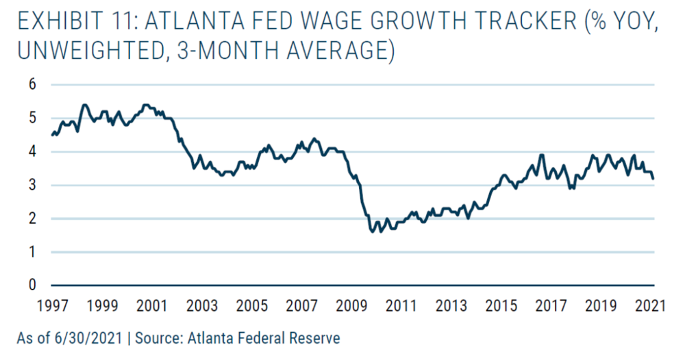 图表 11:亚特兰大联储工资增长追踪器(同比百分比,未加权,3 个月平均值),截至 2021 年 6 月 30 日 | 资料来源:亚特兰大联储