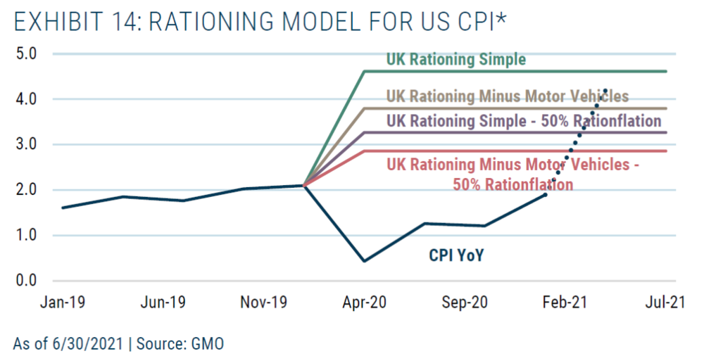 接下来,我们可能会经历类似英国配给结束时的价格反应,即当封锁放松和刺激资金进入经济体之后,预计美国通货膨胀率将可能上升至3.5%~4.5%……正如我们目前所看到的。