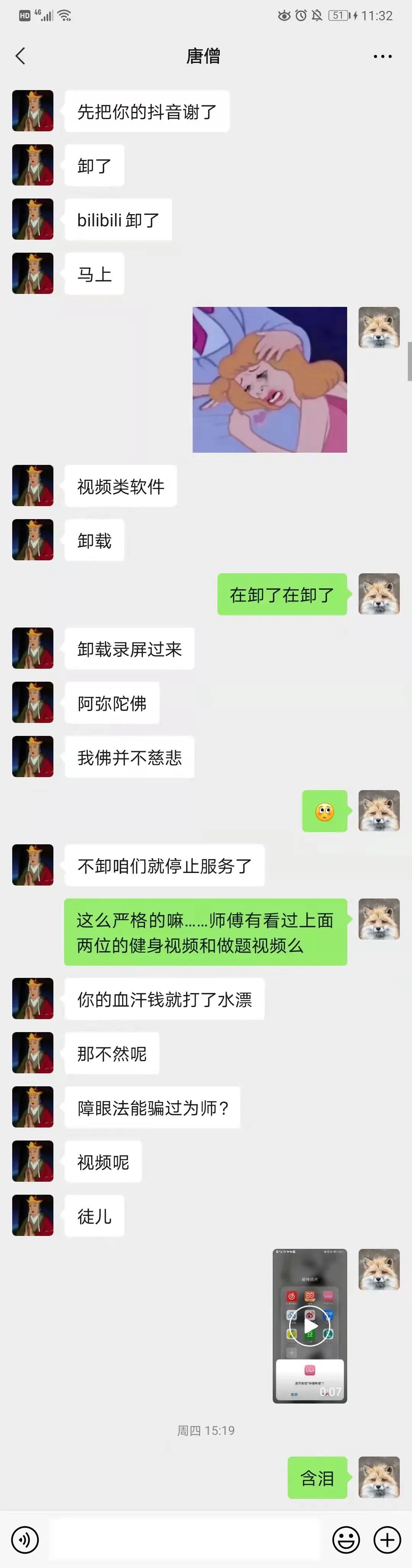 另一位顾客在唐僧的规劝下,录下自己卸载视频软件的证据,发给了对方。
