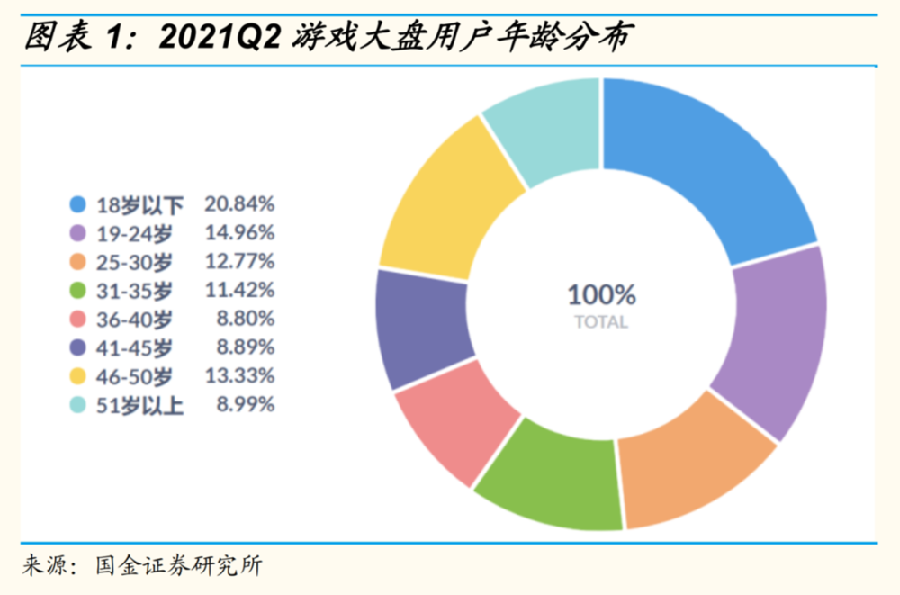 国金证券研报表示:游戏整体的大盘用户中20.84%为18岁以下的未成年人,且从 2020Q1到2021Q2为止,未成年用户的比重呈现上升趋势,防沉迷政策进一步严格后,从用户量的角度来看新的监管政策预计对20%的游戏大盘用户产生影响。