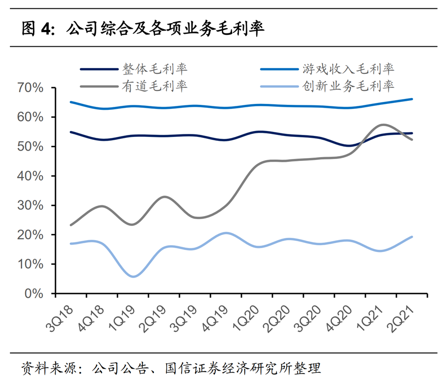 网易财报数据显示:其在网络游戏的毛利率一如既往的稳健,本季度毛利率为 66.1%,同比提升2.3pct,环比提升1.5pct。