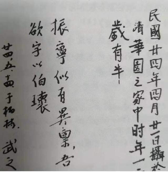 1935年,杨武之去柏林访问,随身带了一张杨振宁的照片。当时他已经意识到自己13岁的儿子可能天赋异禀,所以在照片背后题字:“振宁似有异禀,吾欲字以伯瓌”(“伯”为长子意,“瓌”通“瑰”)。