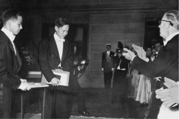 1957年,杨振宁在诺贝尔奖颁奖典礼上