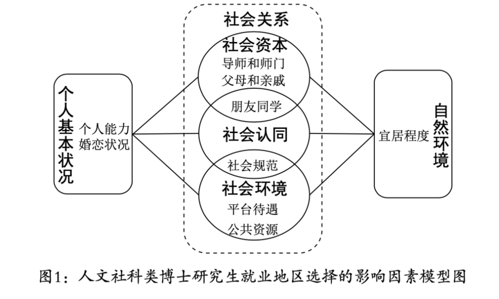 附着于个体身上的个人特质和体现于不同地理区位的自然环境是“个人”和“自然”的基本要义,而围绕博士研究生个体形成的社会资本、社会认同和社会环境是“社会”的关键内容,“个人-社会-自然”三者联动,对人文社科类博士研究生选择就业地区产生综合性影响。