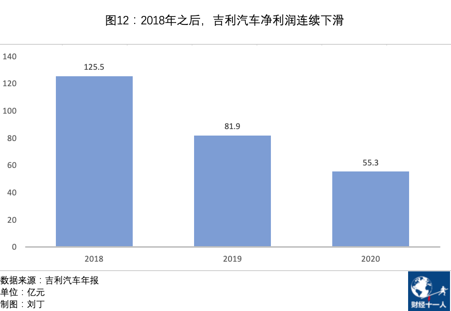 吉利汽车的净利润也大幅减少。