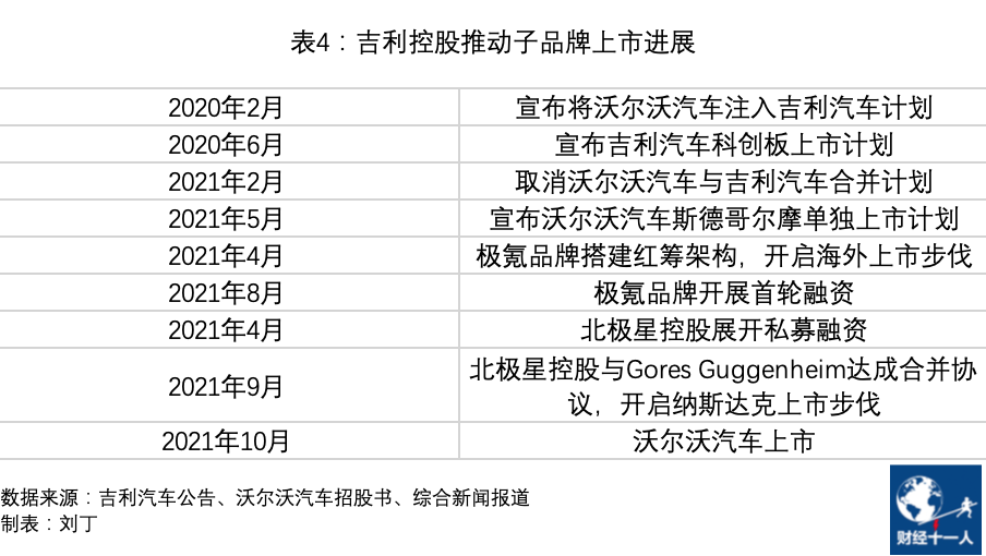 2020年初以来,吉利控股密集推动沃尔沃、极氪品牌、极星品牌的单独上市或融资。通过上市,吉利控股能催化子品牌的发展,也能获得流动性。