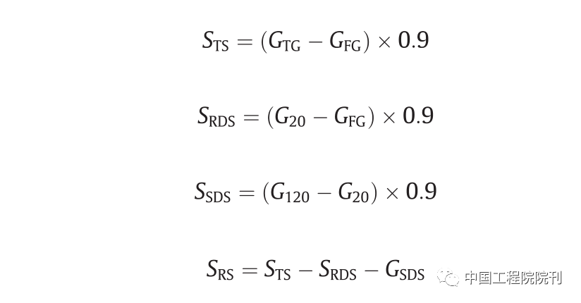 受人体消化系统的启发,Englyst等开发了最被广泛接受的方法,以定量估算从复杂食品原料到纯淀粉的营养淀粉含量。使用胰淀粉酶和淀粉葡糖苷酶控制酶解以确定各种淀粉组分。葡萄糖氧化酶用于测定释放的葡萄糖。基于Englyst法的计算公式如下: