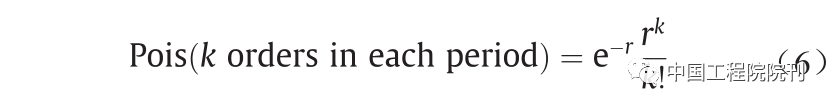 在所有仿真模型中,每个时间段内到达的订单数量 X均服从相同的泊松分布Pois(r)。因此,X~Pois(r),如式(6)所示。