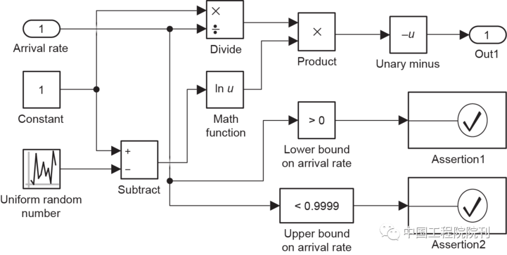 图3显示了到达时间函数模块的详细结构。到达时间函数的输入和输出分别为到达率和到达时间。每次订单到达均会触发到达时间函数,然后模型得到该订单的到达时间。我们将多个仿真模型中的到达率r设定为0.5。在进行仿真时,我们将根据到达时间函数,随机生成客户订单。