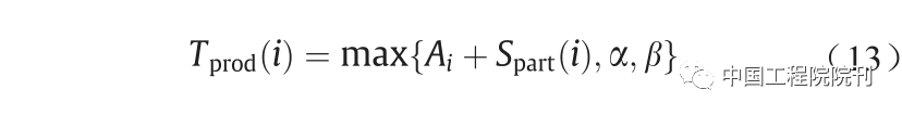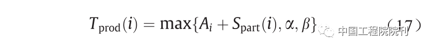 在混合触发策略中,Oi的产品组装触发时间Tprod(i)以式(17)表示,式中,α和β分别由式(14)和式(15)表示。