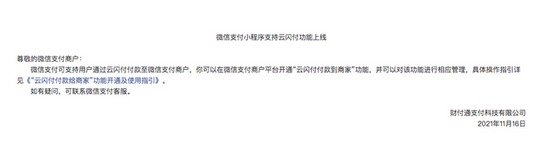 @快科技【腾讯开放了!微信支付小程序支持云闪付功能上线】微信支付16日宣布,可支持用户通过云闪付付款至微信支付商户,用户可以在微信支付商户平台开通“云闪付付款到商家”功能,并可以对该功能进行相应管理。