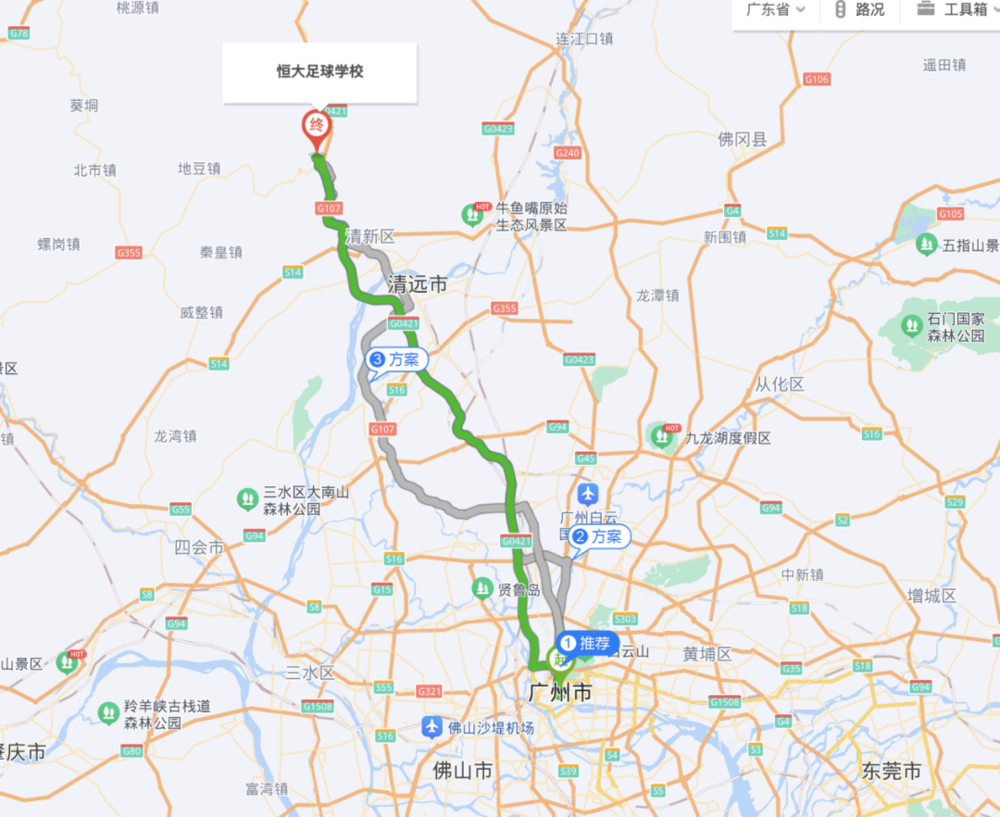 恒大足校距离广州市区超过100公里。较偏远的选址,也是许多家长对选择足校有所顾虑的原因之一