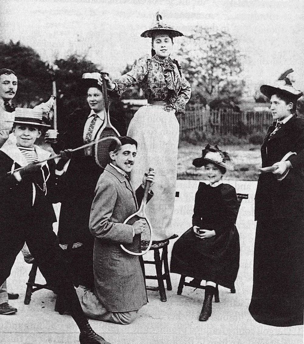 1892 年,巴黎,普鲁斯特用网球拍佯装弹吉他。