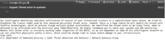 后续有关调查表明,这封邮件确实出自 FBI,并且是 FBI 自己的网址。发件人的域名 eims@ic.fbi.gov 对应的是 FBI 的刑事司法信息服务部门 (CJIS)。CJIS 负责公共安全社区相关的管理运行工作,也可辅助几个用于刑事和民事案件的国家犯罪信息系统,包括执法部门、监狱、监察部门、法院以及缓刑和审前程序。