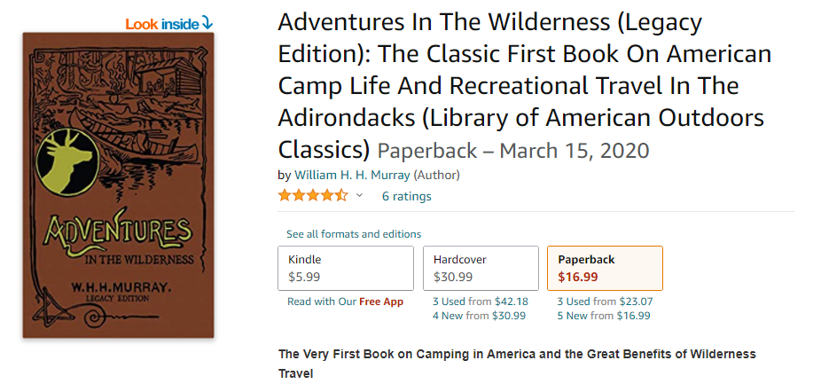 追溯到143年前,1869年美国牧师William H.H. Murray出版了畅销书《野外探险》(Adventures in the Wilderness)和《阿迪达郎克山脉的露营生活》(Camp-Life in the Adirondacks),这两本书便成为了美国历史上影响最深远的“玩转露营”的专业指南。