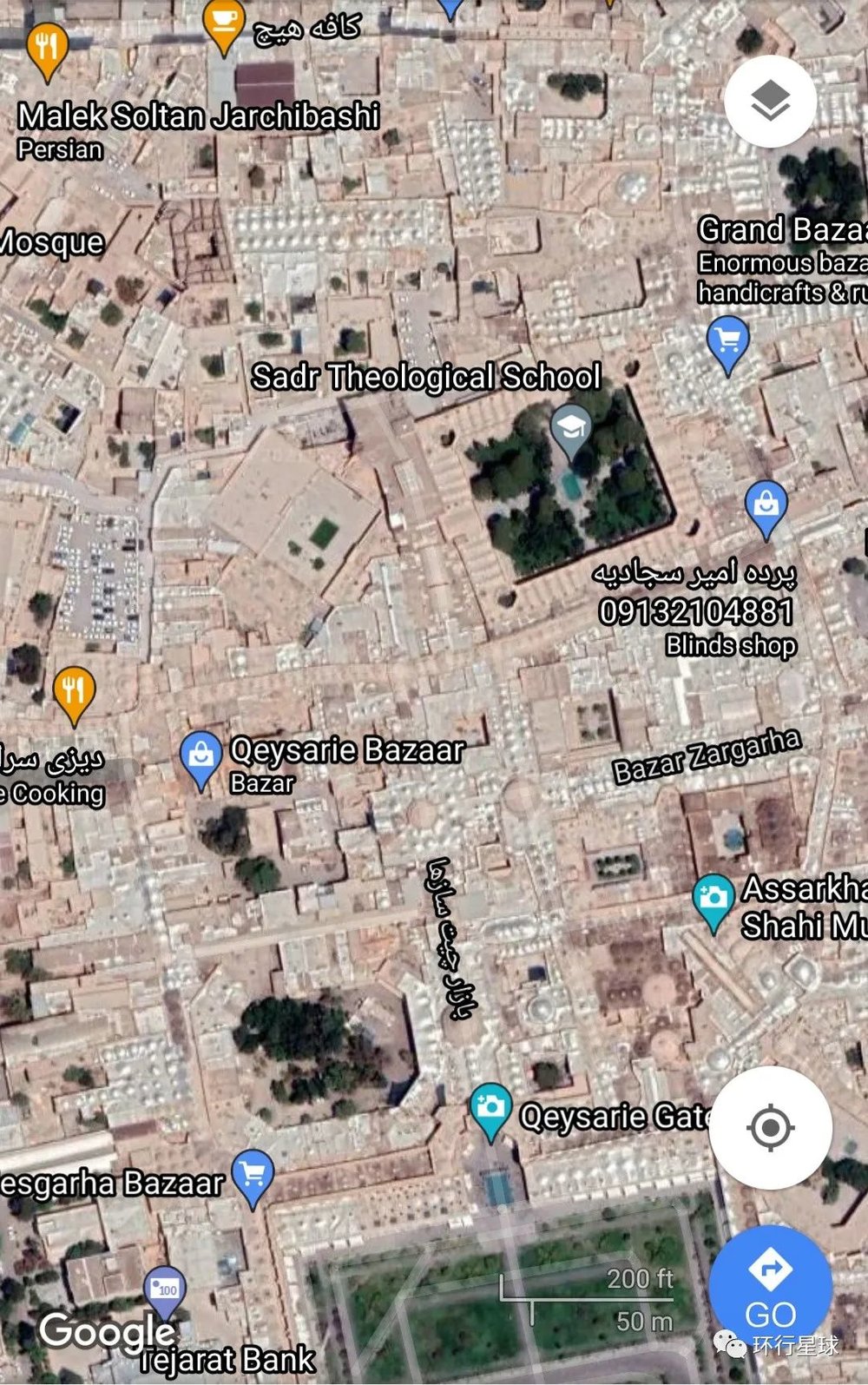 左:德黑兰大巴扎(左边为普通街区,右边为大巴扎,明显看出巴扎的街道都封了顶)右:伊斯法罕大巴扎,图:google map▾
