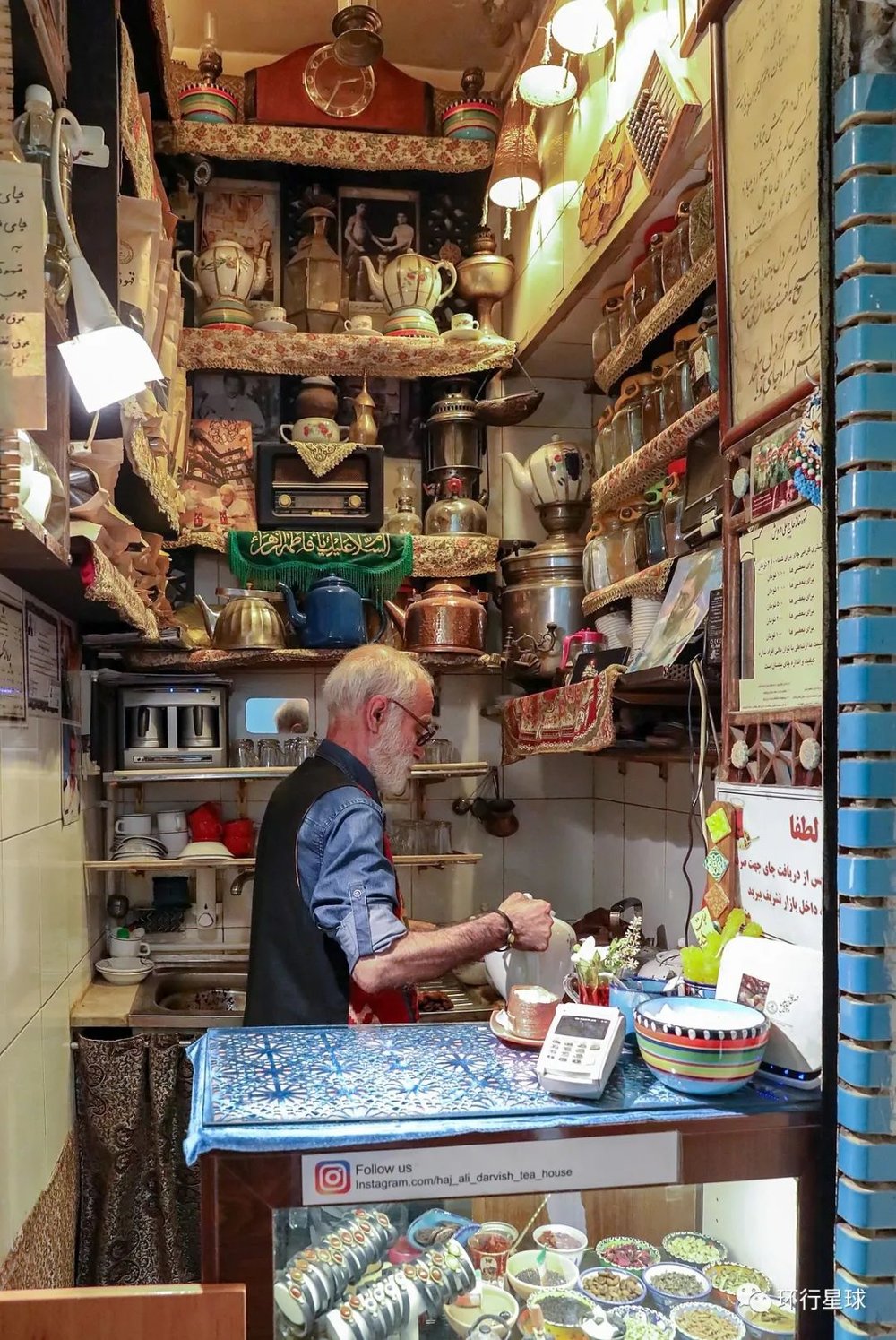 德黑兰大巴扎内的Haj ali darvish茶馆,号称伊朗最小的茶馆,可以点一杯红茶站在茶馆门口看着来来往往的人群▾
