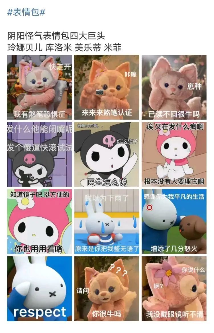 从数据来看并不尽然。“玲娜贝儿”的火自然毋庸置疑,但近两年,中文互联网上的玉桂狗(又被称为大耳狗)、美乐蒂、库洛米同样是人气不遑多让的表情包届顶流,不仅有超越HelloKitty之势,更是在萌系少女中人气十足。