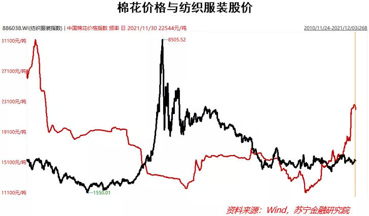 在今年上半年,纺织服装行业在出口高增的支撑下业绩回升,因而股价持续回升,但下半年以来原材料价格上涨以及消费的持续疲弱又压制了业绩预期,股价随之回调。