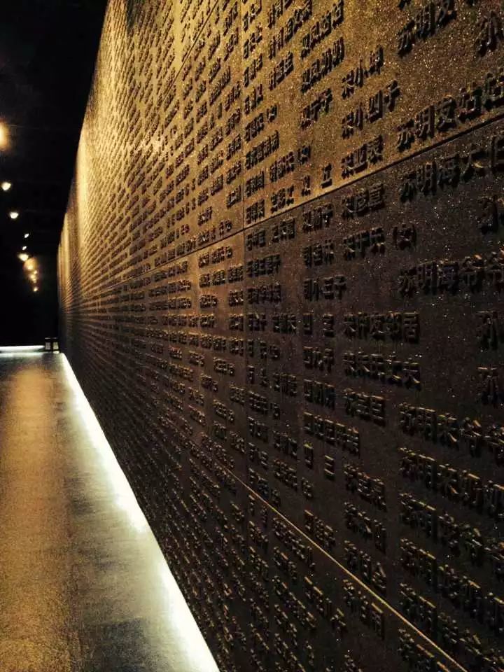 旁边这堵墙上是遇难者的名字,密密麻麻一眼望不到头,很多人是全家人都死光了,可能是邻居旁人追忆的名字,所以会出现xx的姑姑,xxx的大伯。