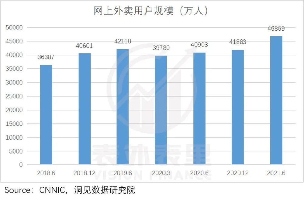 一方面,外卖消费增长迅猛,数据显示,截至2021年6月,我国网上外卖用户规模达4.69亿,较2020年12月增长4976万。