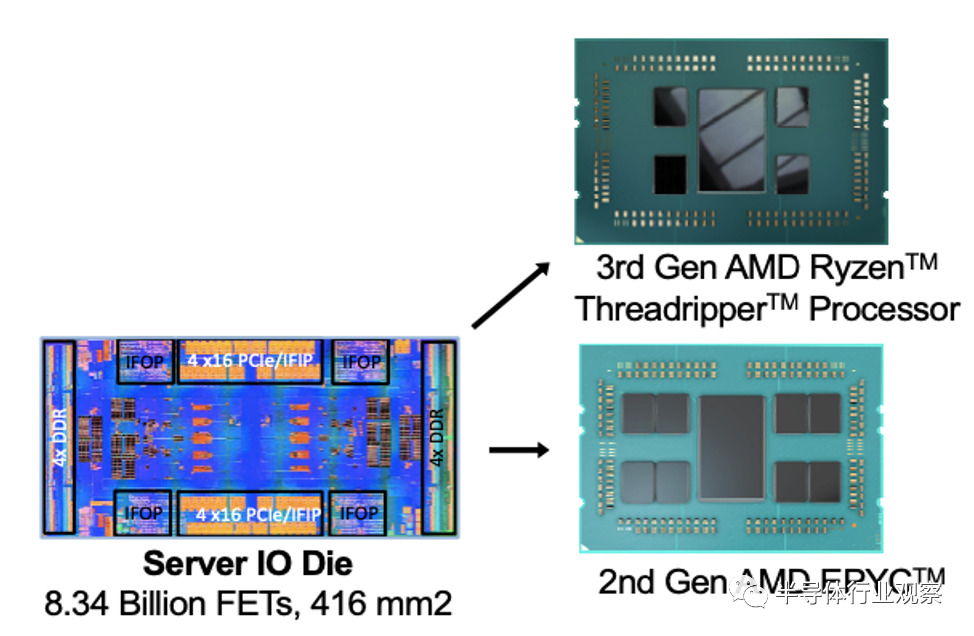 图4.AMD在第三代锐龙(Ryzen)处理器上复用了第二代宵龙(EPYC)处理器的IO Chiplet