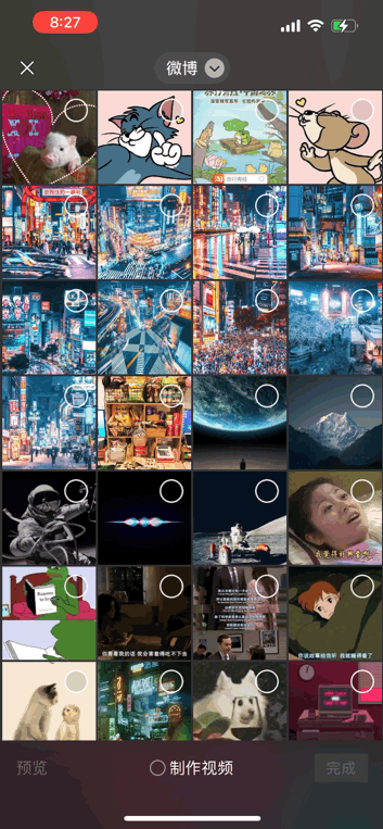 当发布朋友圈,一次性选择 9 张及以下图片,或 1 段视频时,你可以手动选择是“制作视频”或是按原本的格式直接“完成”。