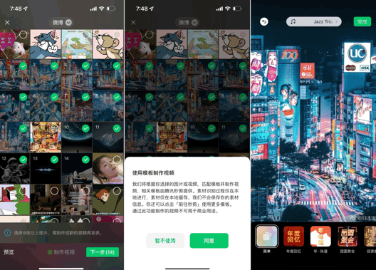 发布朋友圈时,选择超过 9 张照片会建议使用模板制作视频