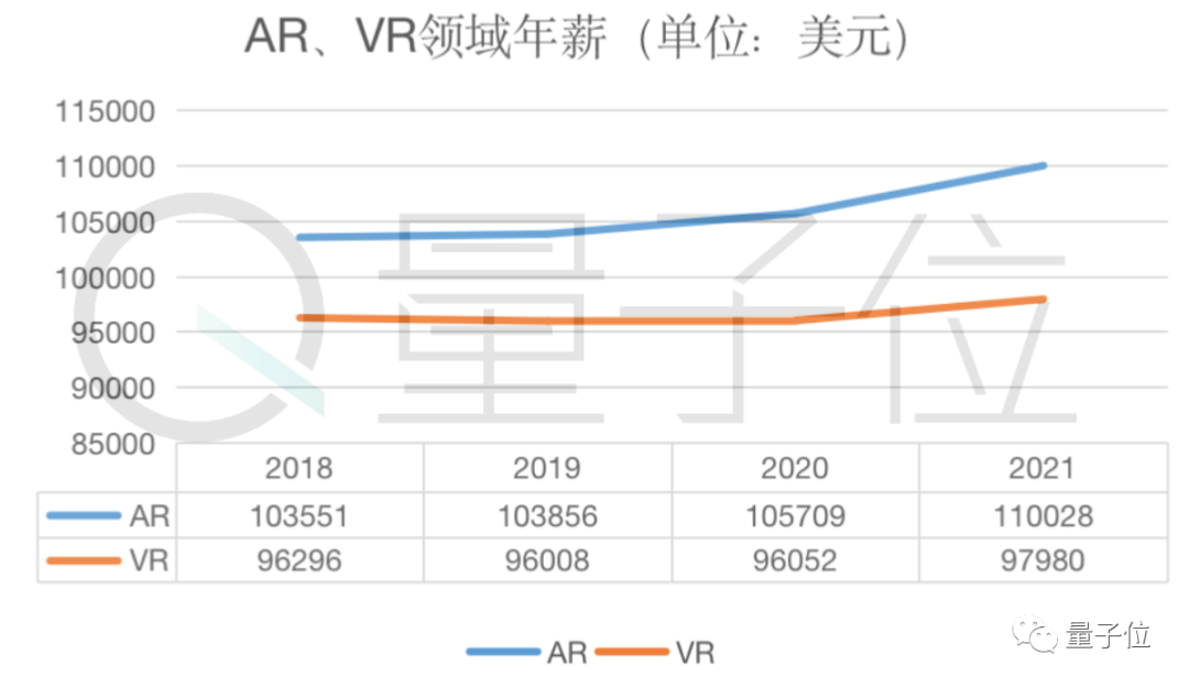 AR领域这几年的年薪一直在稳定上升,2021年相比2019年增幅达到5.9%:
