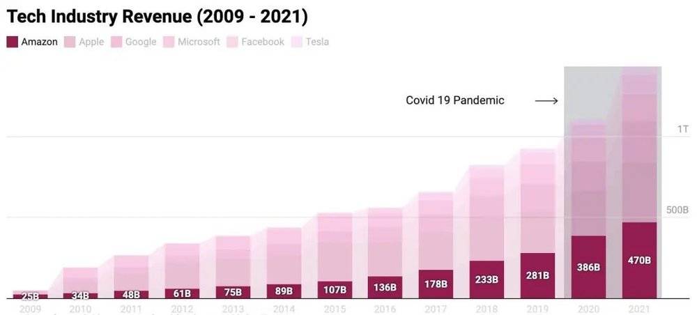 我们也从这些增长中,看看这些科技巨头如何在 2021 年创下营收的新纪录。