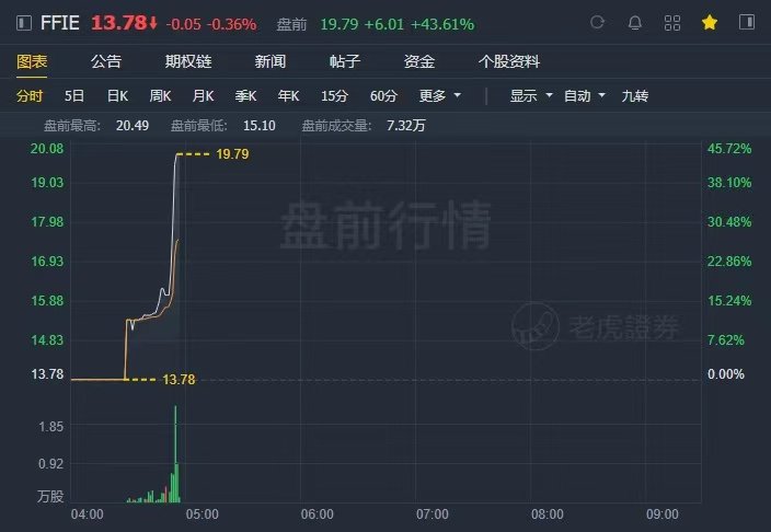 按照计划,FF将于今晚正式在纳斯达克挂牌上市,代码为“FFIE”。而在美股盘前交易中,FFIE的股价已经飙升超过了40%。