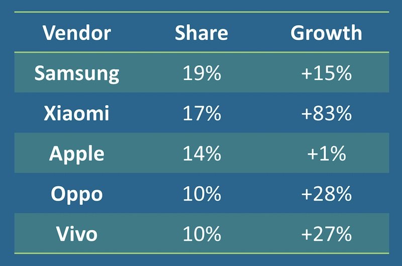 那就是说:当小米、OPPO 和 vivo 忙着接收华为剩下来的中低端市场之际,销量大幅上升之际;但尽管 iPhone 的销量无法借机大幅增加,但销量大多集中于原来属于华为的高端市场。那就正如 Odin 上回所说:“跌倒华为、吃饱苹果“。