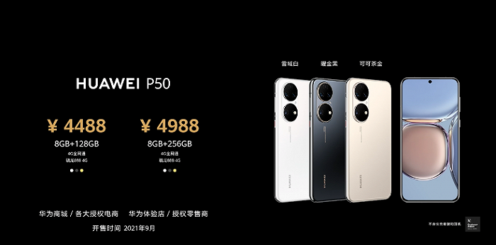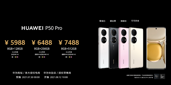 @界面新闻【华为公布P50系列手机定价,4488元起售】7月29日晚,在华为旗舰新品发布会上,华为公布P50系列手机定价,P50售价为4488元起、P50 Pro售价为5988元起。P50系列为华为首款出厂预装鸿蒙系统的手机。其中,华为P50采用6.5英寸柔性OLED直屏,华为P50 Pro采用6.6英寸柔性OLED曲面屏。