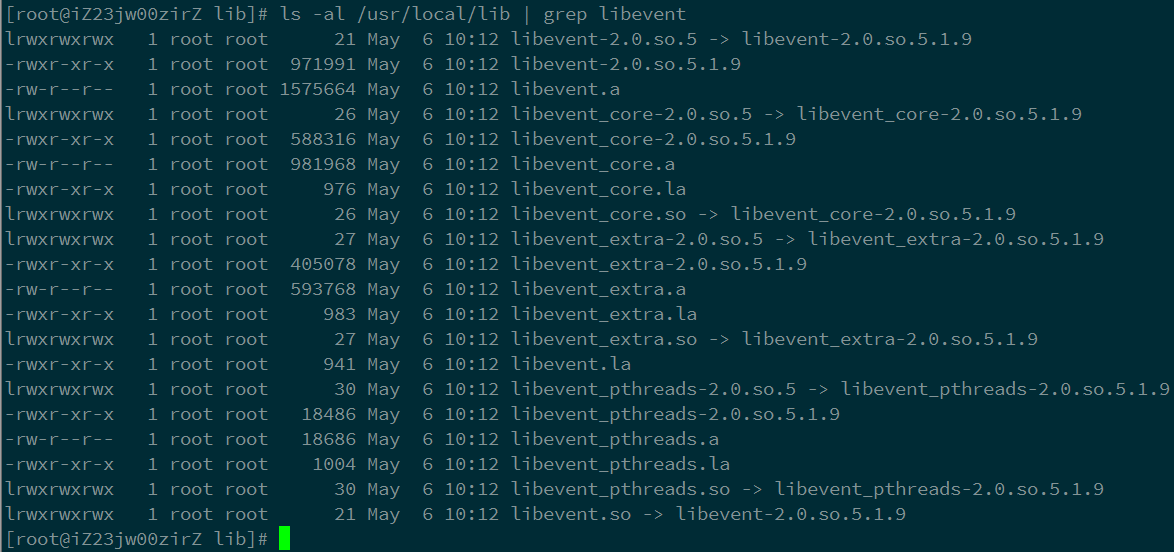 成功安装后在/usr/local/lib目录下会生成libevent文件,使用grep命令查看。
